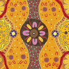 In Aboriginal culture, certain customs and practices are performed separately in a language group between men and women. These separate businesses are often referred to as men’s business and women’s business. These businesses are carried out under strict guidance of unwritten Aboriginal laws. E. Young us a well-known artist from Northern Territory. She uses bright and vibrant colors for her artworks. Her work depicts land, flora and fauna with a flavor of traditional Aboriginal culture. With her expertise, Young used her strong color sense in Women?s Business artwork. In the natural environment woman are sitting around the waterholes with coolamon and digging sticks. Wildflowers are visible with bright colors around in the area. Patch workers and quilters love her design