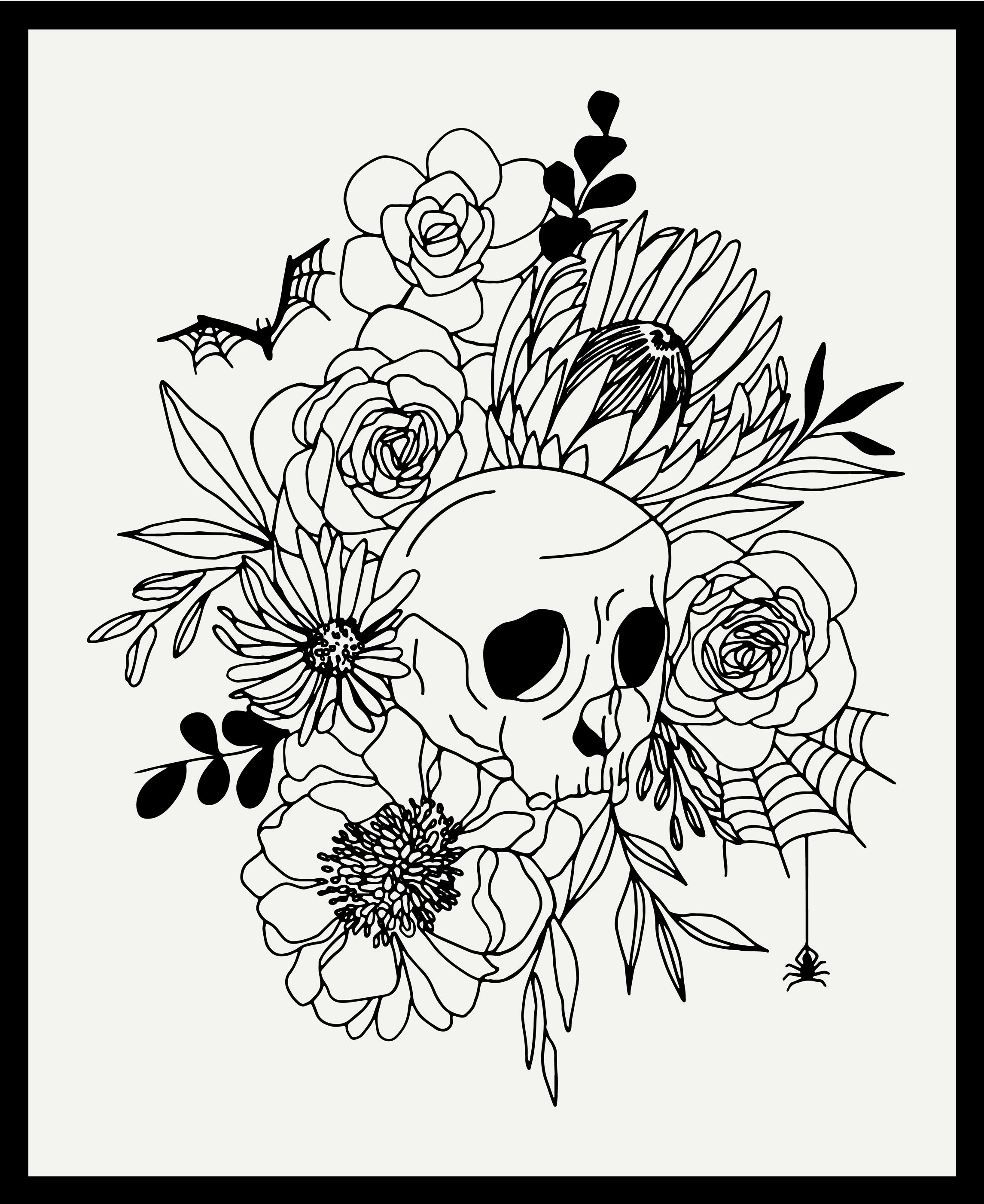Alli K DESIGN - NOIR - GHOST - 34" x 45" PANEL is part of the "Noir" collection and brings the spirit of the season to life. Embrace the eerieness with sophisticated patterns and all things spooky. Bats and spiders never looked so good!