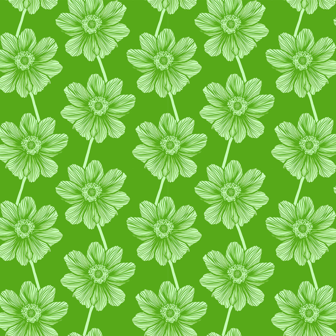 This array of drawings includes familiar forms like Anna Maria’s Echinacea and Peony, but they are joined by new Mums, Sunflowers and Anemones. The whole palette flows through sunlit, soft, bright and deep tones offering a companion to any fabric. This collection is reorder-able and sure to be a staple on your shelf.