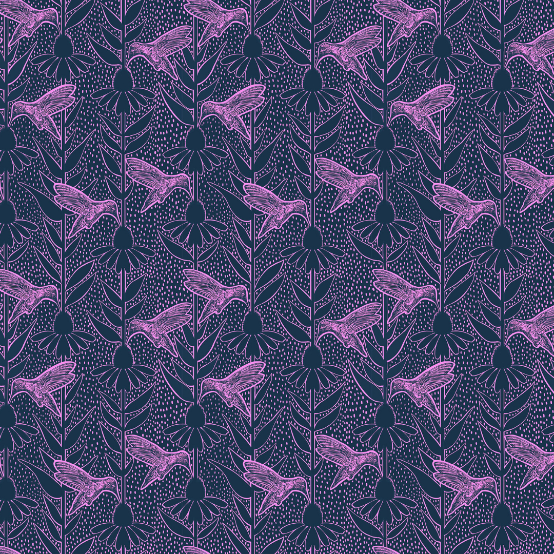 ANNA MARIA PARRY - Indelible Ink - Humming, Navy SHIPPING MARCH 2026 is part of the Indelible Ink Collection, the newest addition to her Indelible garden, celebrates the pollinators—the birds, bees, butterflies, and moths that keep nature humming, buzzing, and blooming.