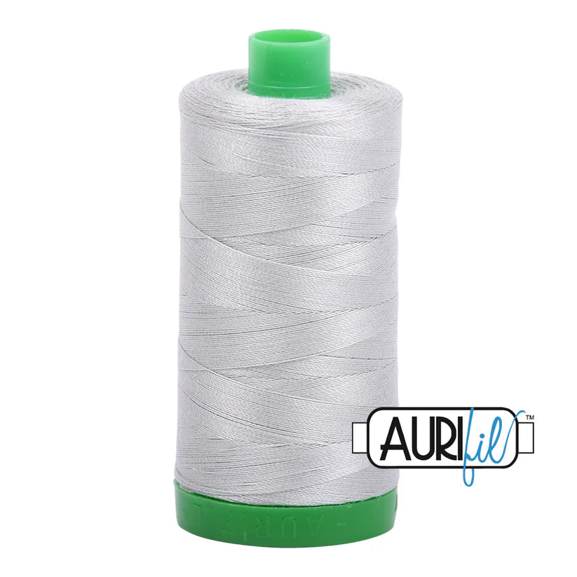 AURIFIL - Mako - 6726 Airstream is a pale, silvery blue-grey thread that adds a soft, airy touch to your stitching. Made in Italy from 100% long-staple Egyptian cotton, it provides smooth, even stitches—perfect for quilting, embroidery, and piecing with a clean, modern finish.