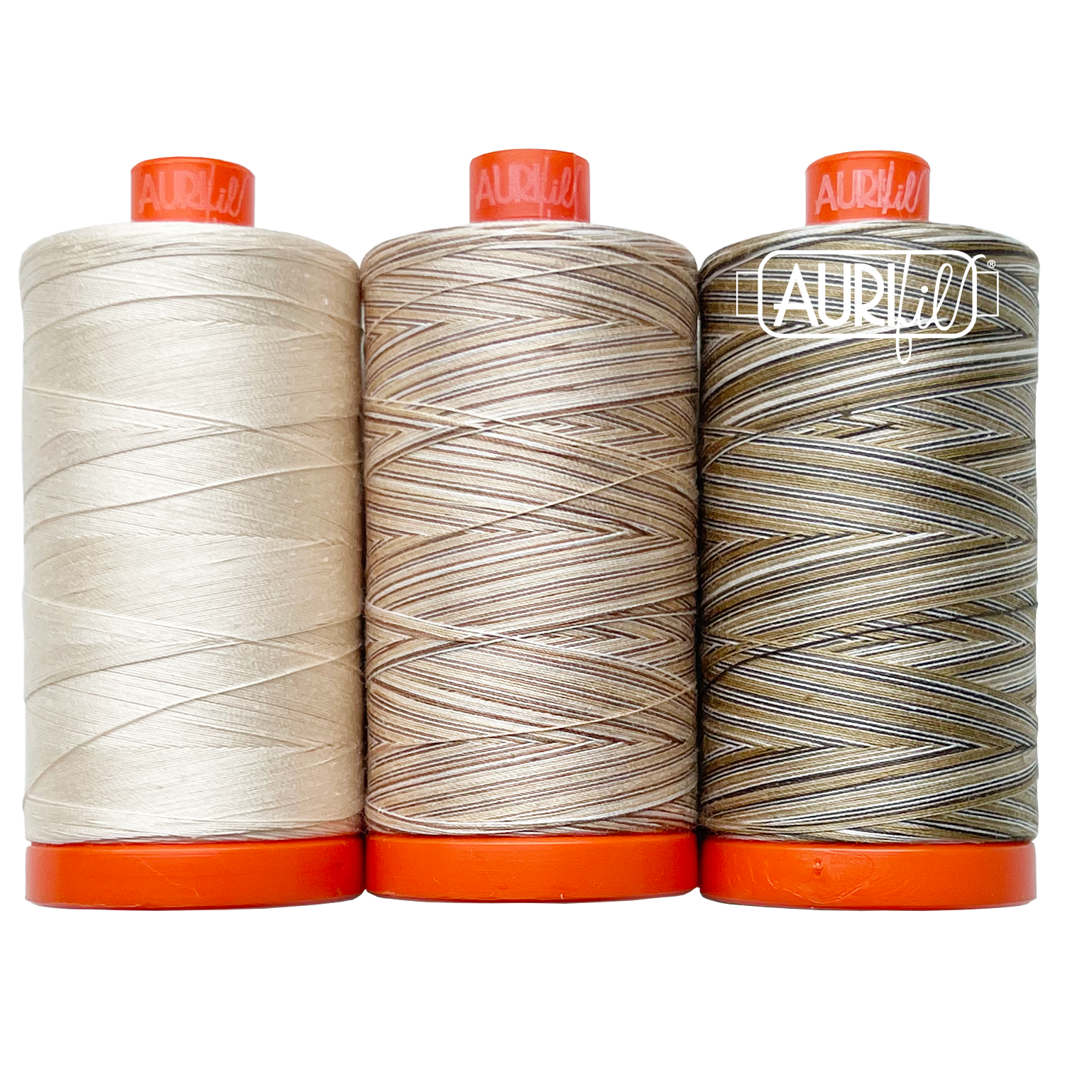 Each set contains 3 large spools of 50wt — 2 variegated and 1 complementary solid.