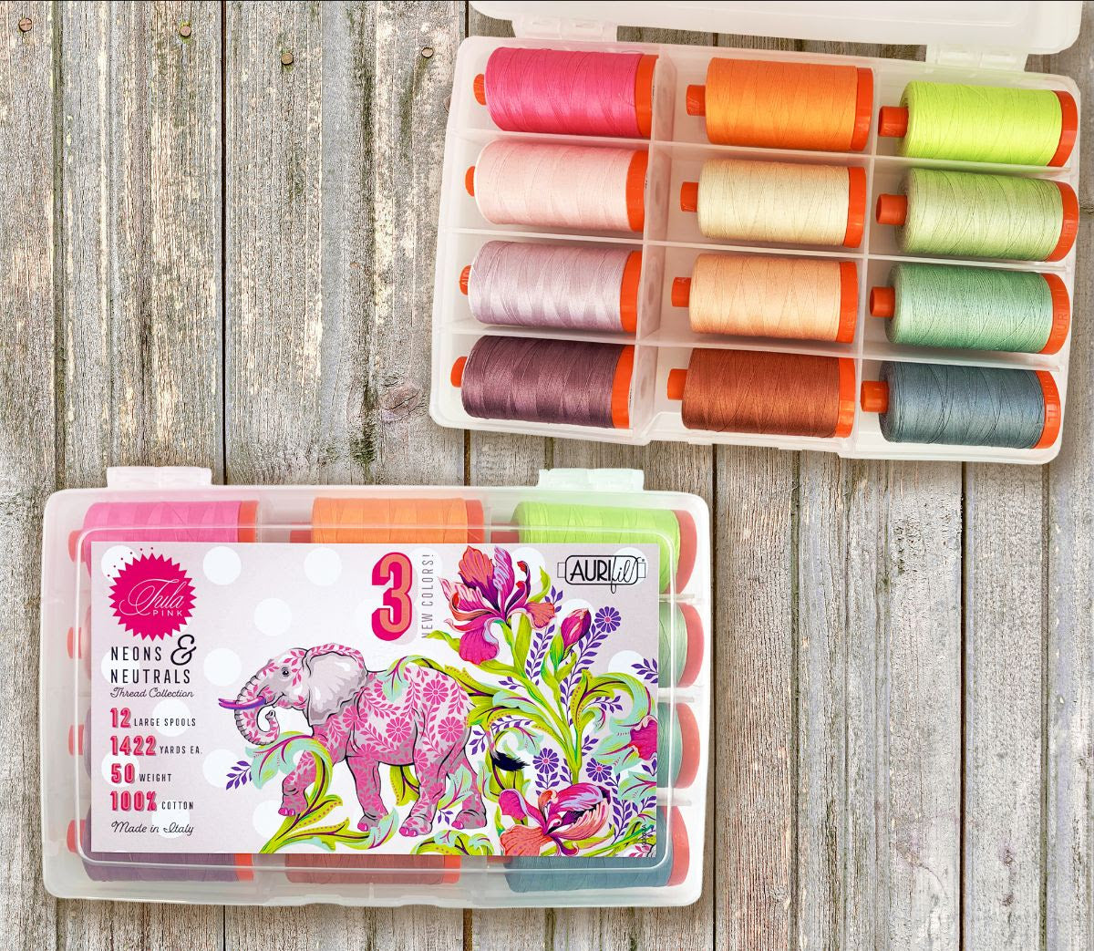 AURIFIL - TULA PINK - NEON'S & NEUTRALS THREAD COLLECTION introduces a whole new range of Tula hues – rainbow neutrals These collection IS available as limited edition set.