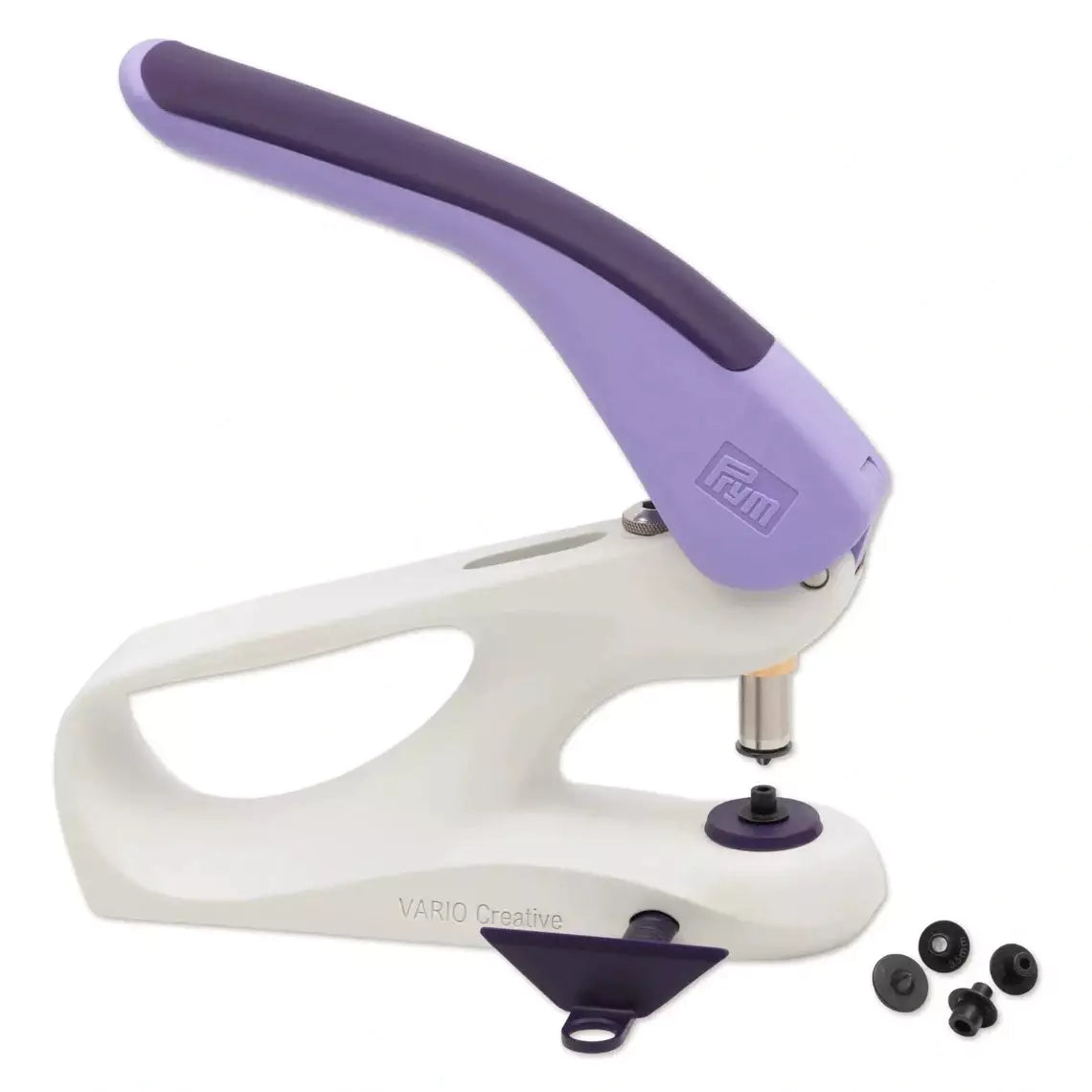Streamline your toolbox with the Prym Dritz VARIO Creative® Tool – a multi-functional tool that punches holes, attaches snaps, and applies eyelets and rivets.