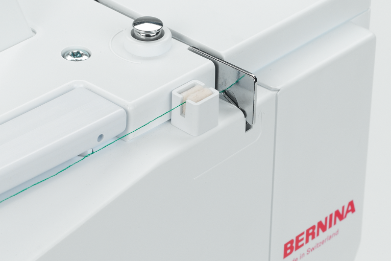 The BERNINA CANADA - Thread-lubrication Unit is a help when sewing with metallic or loosely twisted threads. After coming off the spool, the thread passes through a special Silicone Fluid which noticeably improves its gliding properties. This allows reliable guiding and effectively prevents challenging threads from tearing or breaking in the eye of the needle. It also helps ensure the success of ambitious sewing projects using difficult-to-work with threads.