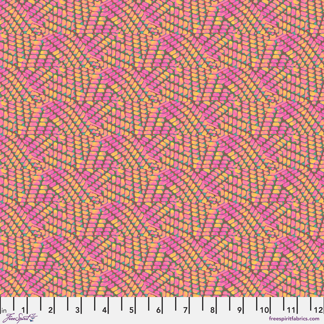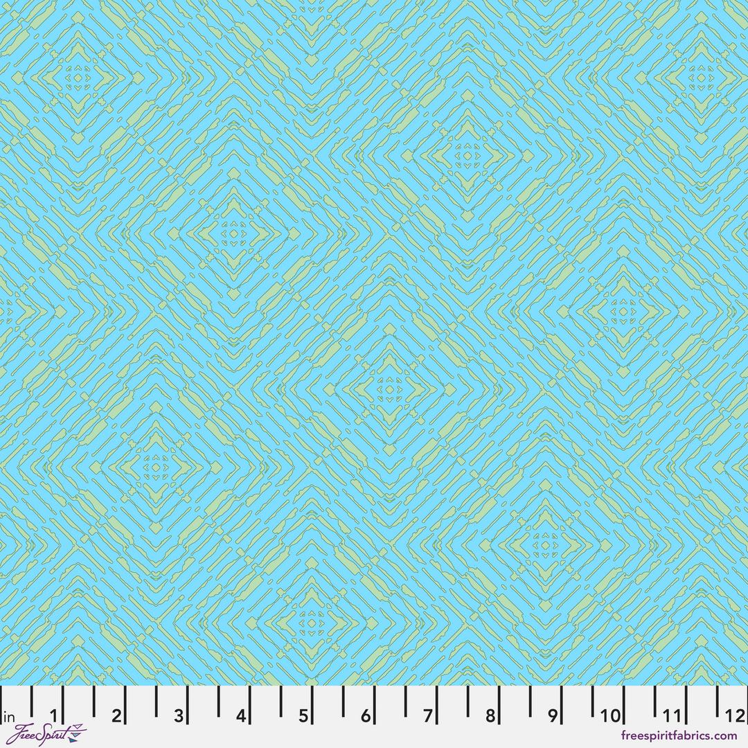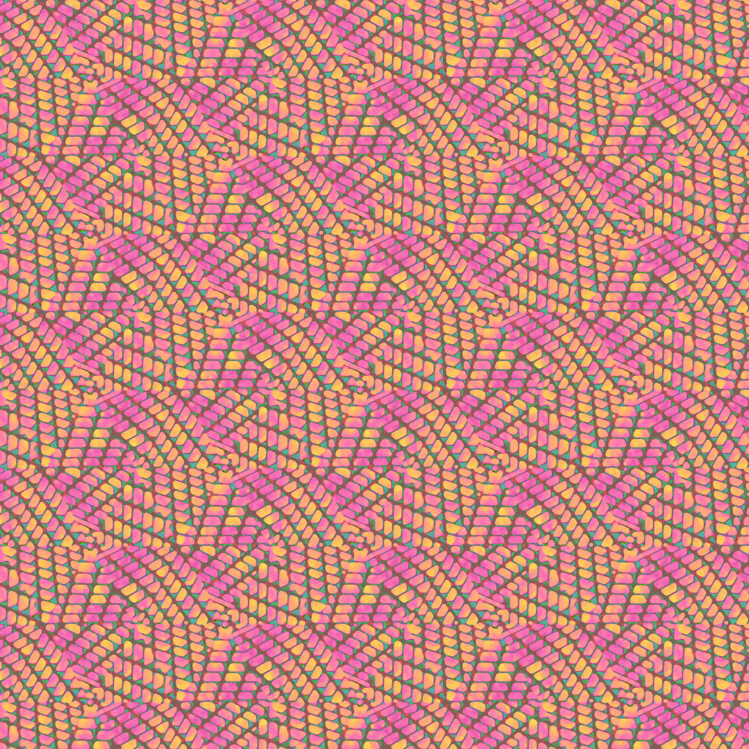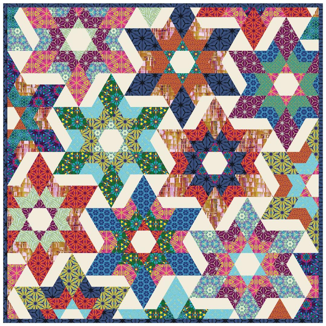 The sixteen-print collection features bold, geometric designs of varied scales and richly textured blenders that hit every note on the color spectrum.