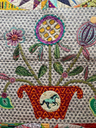 A 22" centre medallion of machine applique and broderie perse is surrounded by "wonky" pickle dish blocks. Maybe use a large print fabric instead?