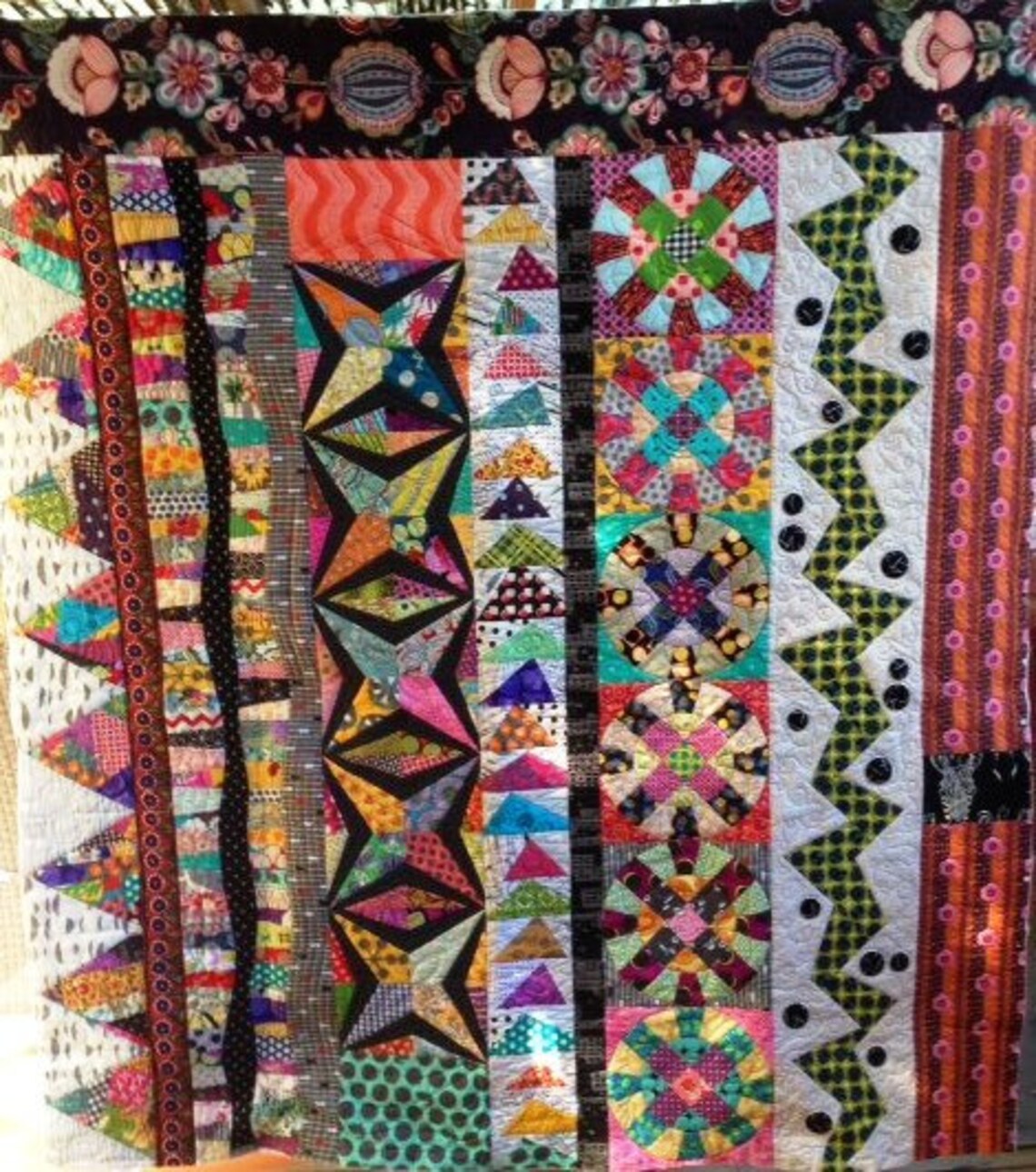 Chris Jurd - Strippy Sampler Pattern is basically a scrap quilt constructed using lots of different techniques. Free form and foundation piecing.