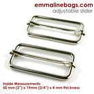 EMMALINE BAGS - Adjustable Sliders (2 Pack) is wire formed adjustable sliders for your bag straps. Features rounded corners and quality finish.