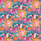 Bright colours and playful forms such as stars, blossoms, hoops and ribbons are arranged in playful ways. Organic and geometric shapes create fresh rhythmic patterns with a kaleidoscopic appearance.