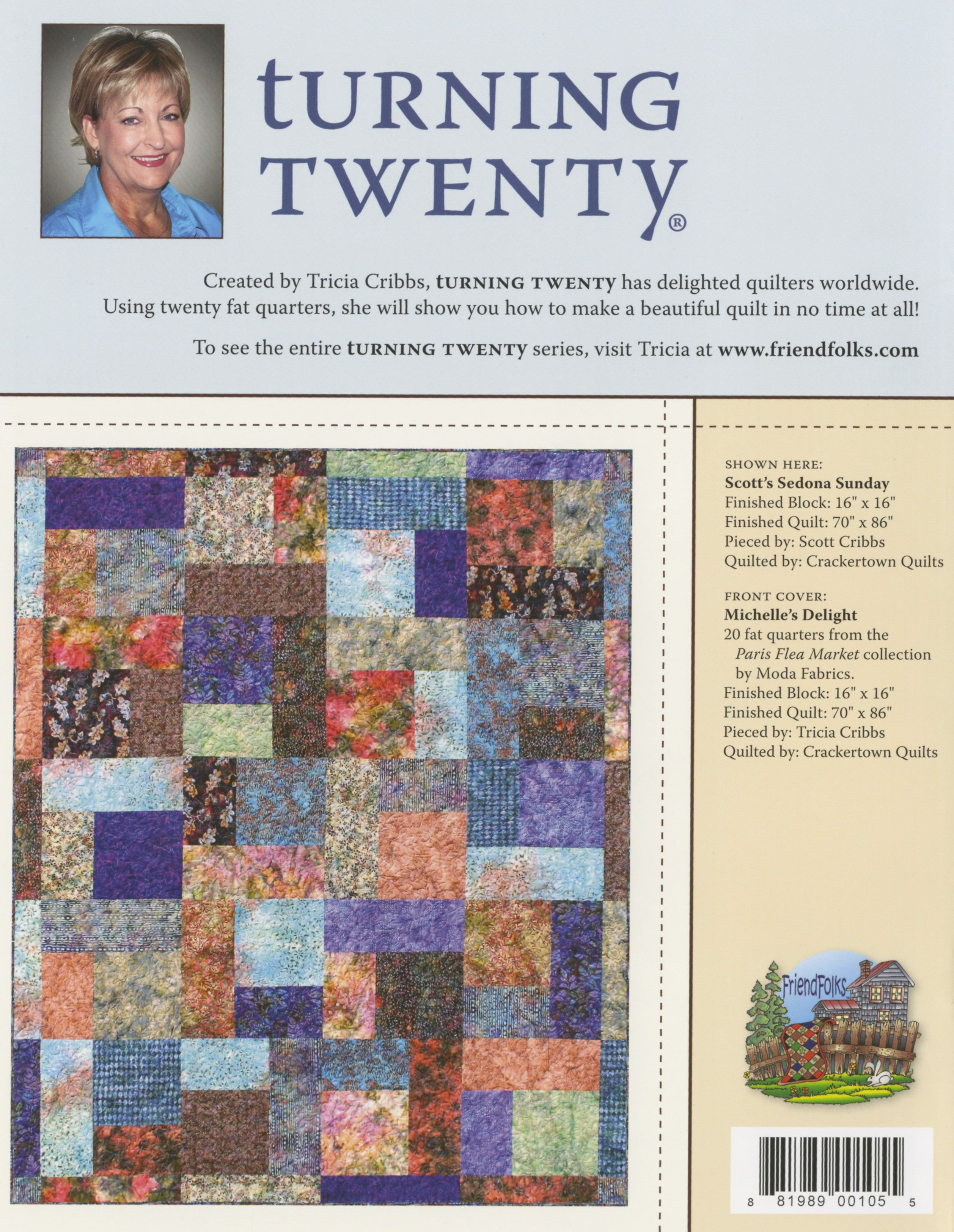 FRIENDFOLKS - Turning Twenty Pattern, turn 20 fat quarters into a quilt in 3 hours. The perfect pattern if you are a beginning quilter, a dream if you are an experienced quilter, and great for classes.