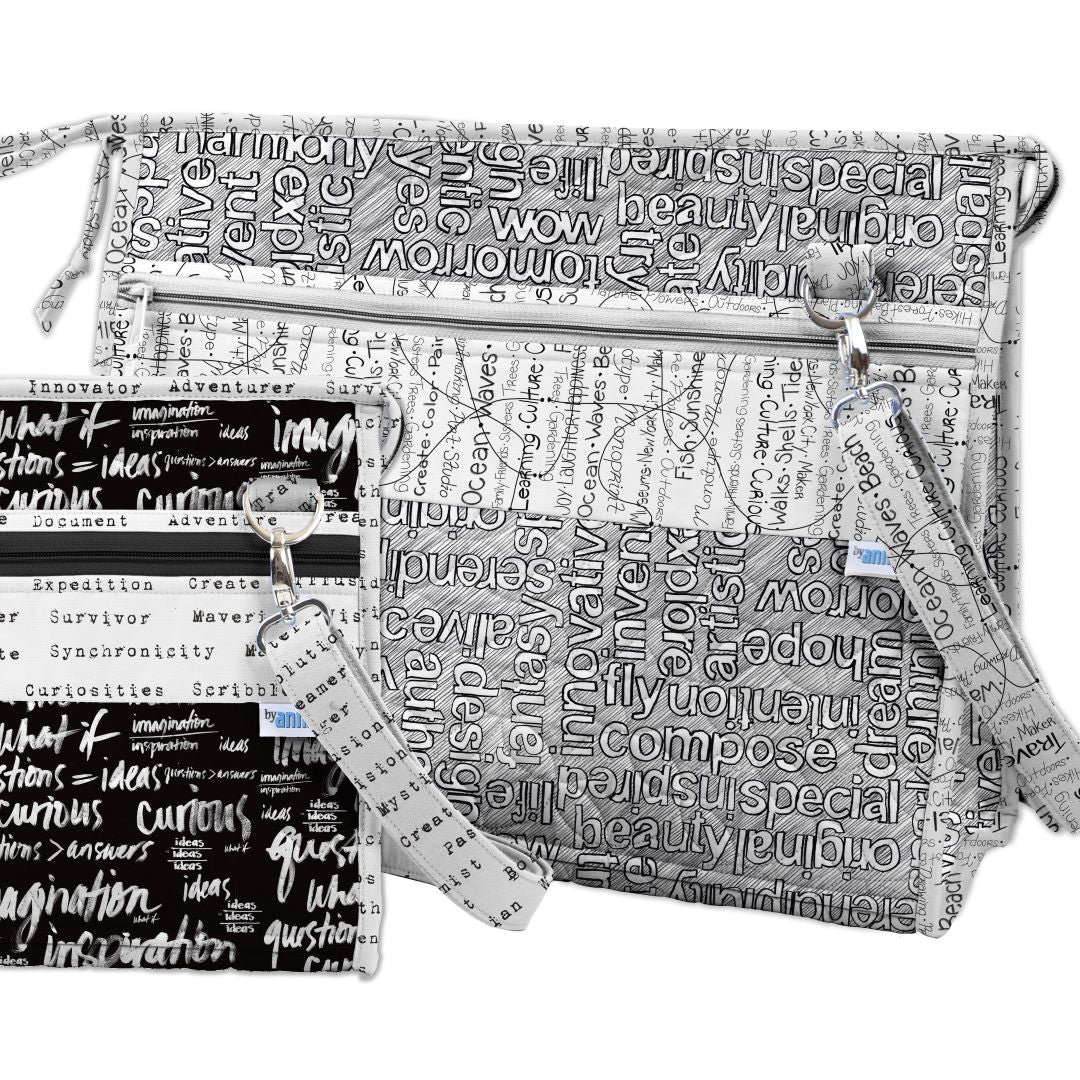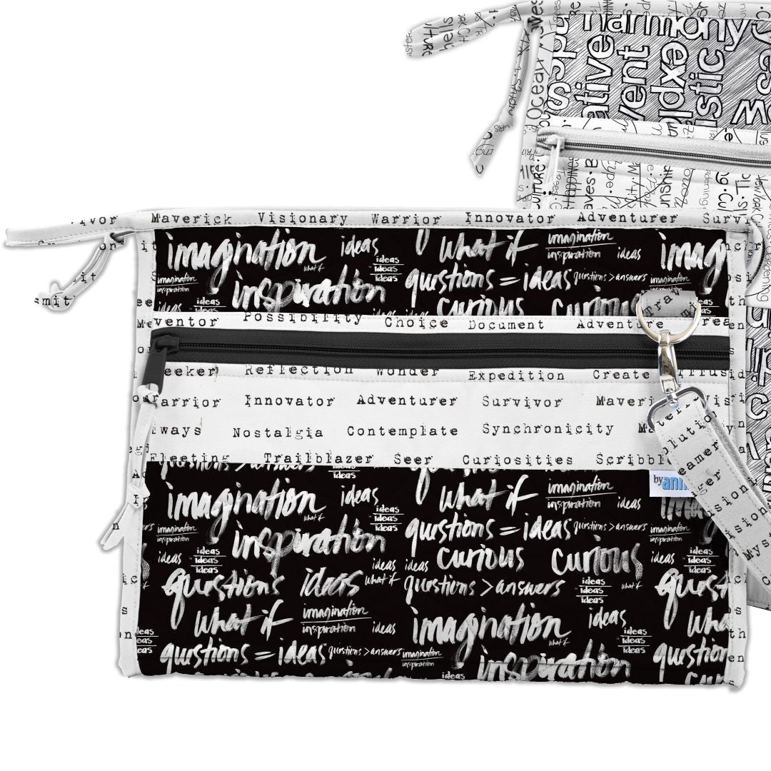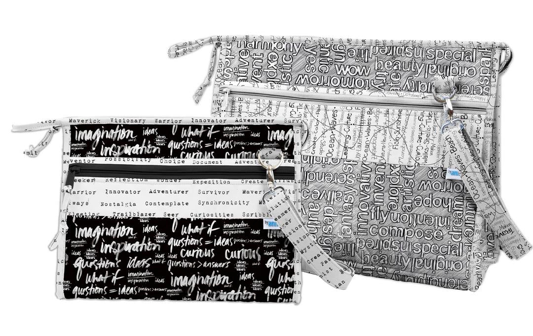 BYANNIE - WRITING ON THE WALL - TAKE A STAND is a beautiful interpretation of the ByAnnie Take a stand pattern and Freespirit "Writing on the Wall" collection with two zippered pockets on the outside of the tote and two inner mesh pockets keep everything organized and easy to view.