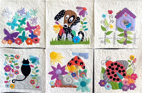 DEBORAH LOUIE - Miss Molly’s Flower Garden: Book and Pattern Sheets allows you to create this sweetest, most adorable raw edge sketch applique quilt is sure to delight that special young person in your life.