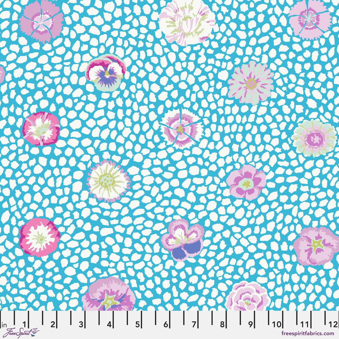 KAFFE FASSETT - KAFFE FASSETT COLLECTIVE - STASH, Guinea Flower, Turquoise showcases beautiful fabric by Kaffe Fassett.