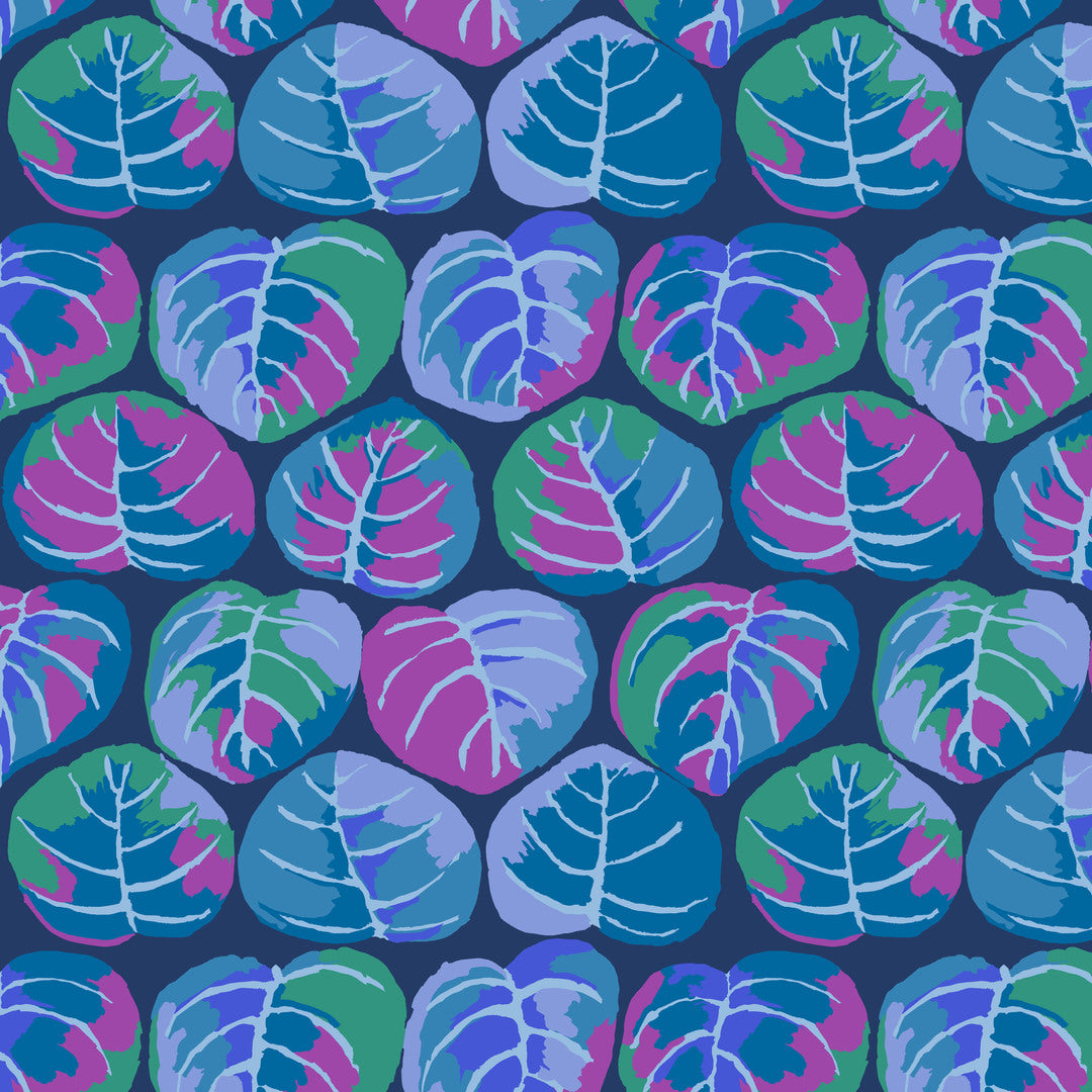 KAFFE FASSETT - KFC FEBRUARY 2025 - Palm Leaves, Blue is a breathtaking print featuring brand-new designs by Kaffe Fassett and re-imagined classics from Brandon Mably and Philip Jacobs in their February 2025 Collection.