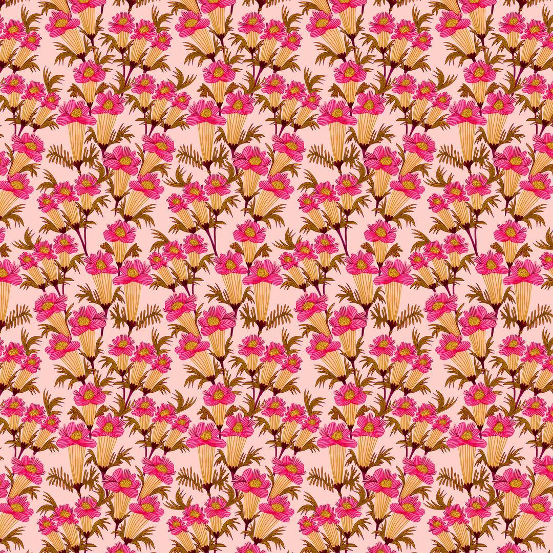 KIRSTEN KATZ - Springtime Splendour - Vintage Blossoms, Blush is part of the Springtime Splendour Collection, featuring tall, retro-style floral sprays in hot pink and golden tones on a soft blush background.