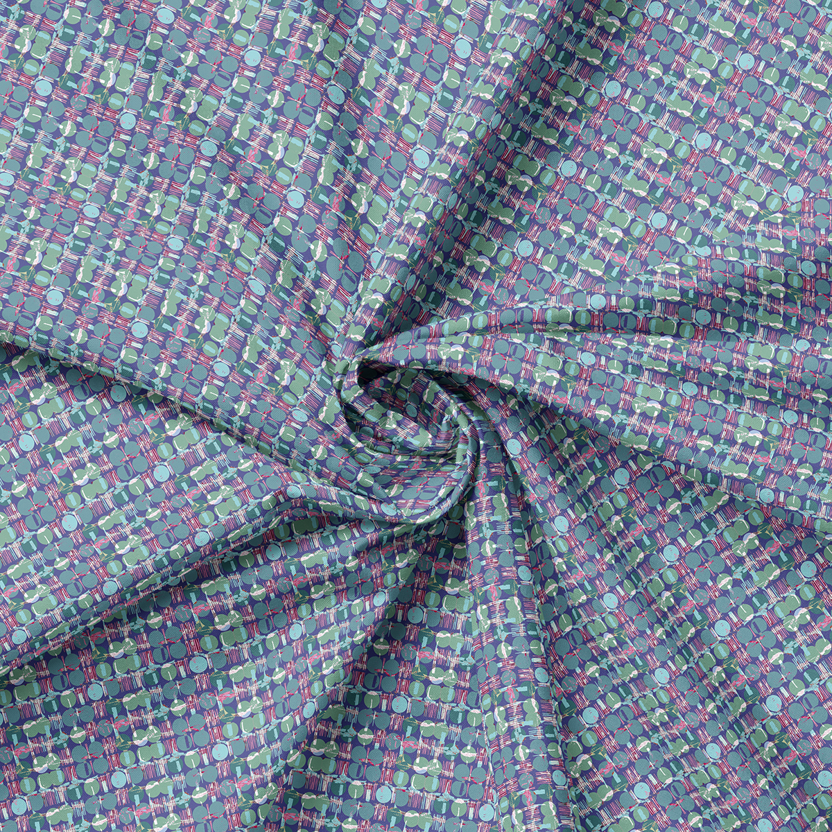 MIA PRESLEY DESIGNS - Polar Kingdom - Opaline is part of the Polar Kingdom Collection, featuring layered rows of rounded shapes and fine linear textures in cool teal, sage, and soft plum tones.