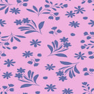 MIA PRESLEY DESIGNS - Song of the Hummingbird - Delicate Floral, Pink is part of the Song of the Hummingbird Collection, featuring tiny purple blossoms and leafy sprigs scattered across a soft pink background.