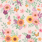 MIA PRESLEY DESIGNS - Sunflower Reverie - Flutter & Bloom is part of the Sunflower Reverie Collection, featuring radiant sunflowers, delicate wildflowers, and graceful butterflies scattered across a soft neutral background.