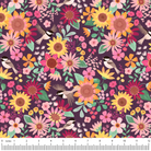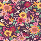 MIA PRESLEY DESIGNS - Sunflower Reverie - Petal & Song is part of the Sunflower Reverie Collection, featuring vibrant sunflowers, blooming florals, and charming songbirds set against a rich plum background.