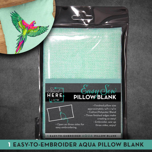 OESD Easy Sew Pillow Blank is a 14” x 14” zippered pillow cover blank that’s easy to hoop and personalize with your favorite embroidery designs.