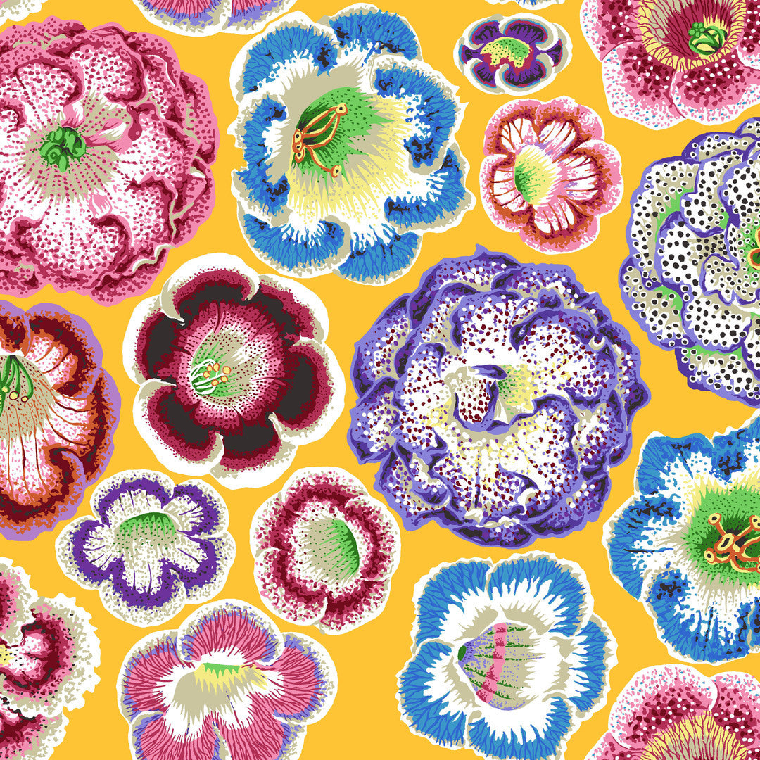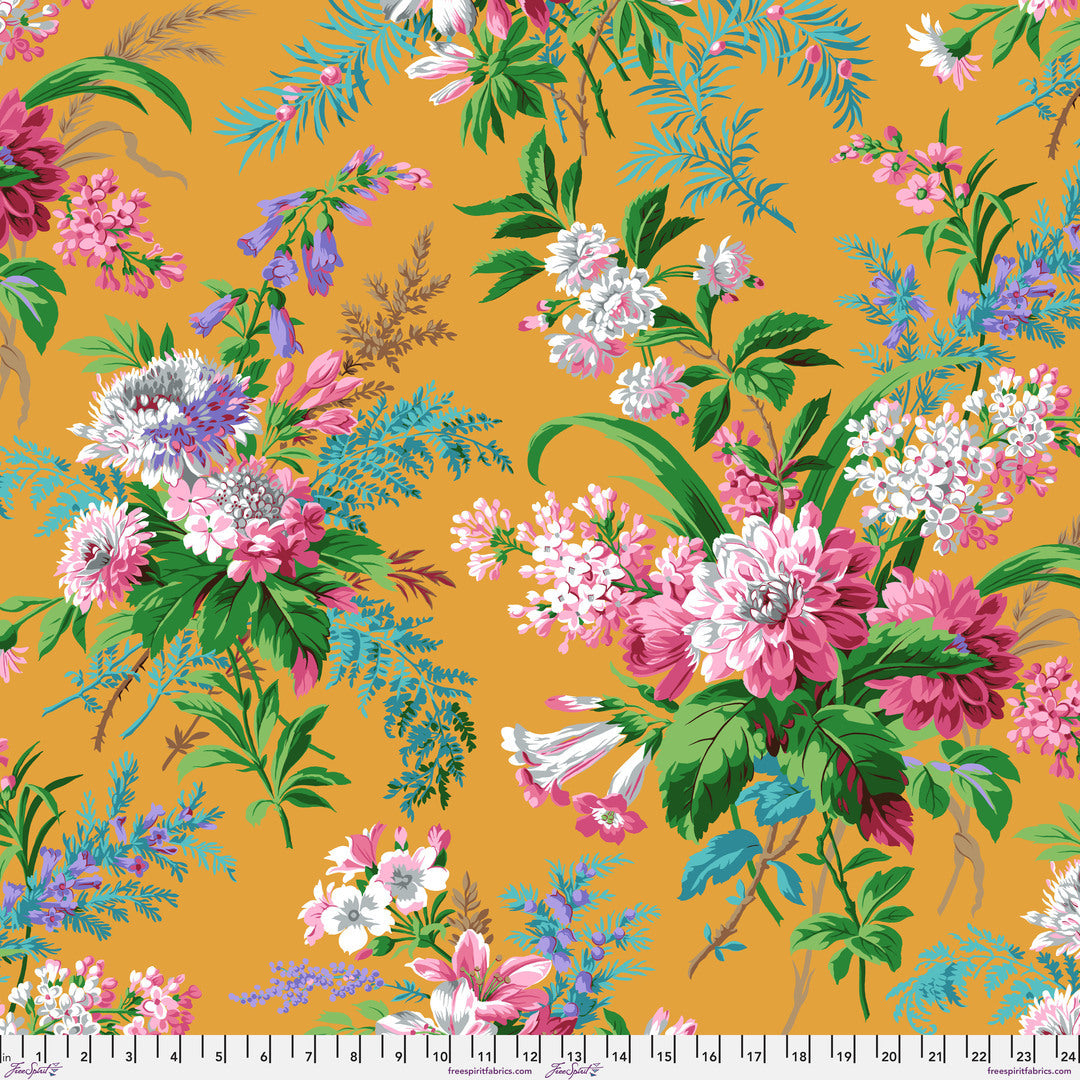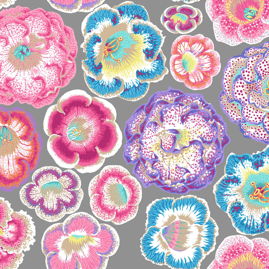 KAFFE FASSETT COLLECTIVE - August 2026, showcases bold, color-saturated quilting cottons from FreeSpirit Fabrics with signature florals, playful geometrics, and lively coordinates.