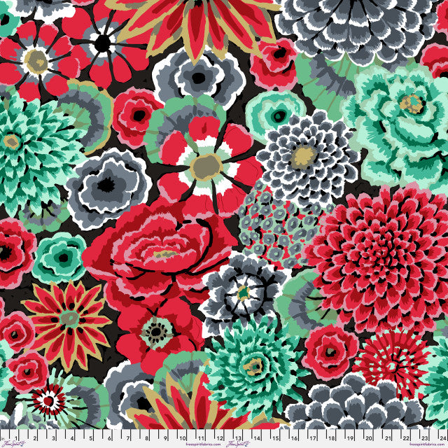BRANDON MABLY - KFC August 2026 - 108" - Enchanted, Contrast features a dramatic, extra-wide floral design by Kaffe Fassett for the Kaffe Fassett Collective August 2026, packed with oversized blooms and bold, painterly detail.