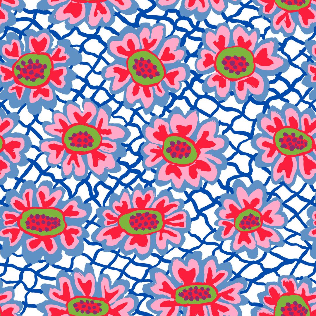 Brandon Mably - KFC FEBRUARY 2023 - Flower Net Wide Back, White showcases beautiful fabric by Brandon Mably for Kaffe Fassett Collective.