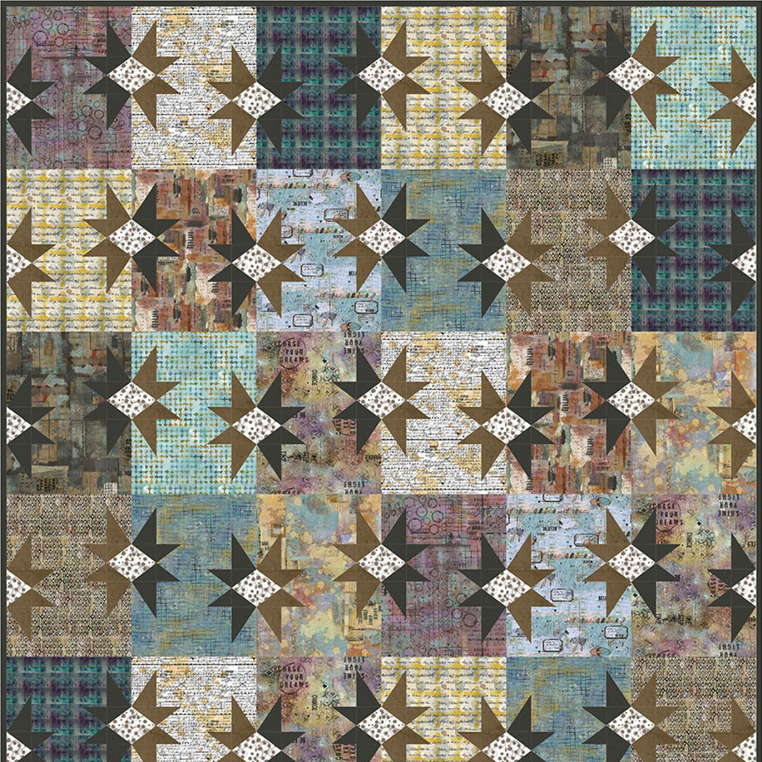 MARCEA OWEN - Seth Apter - One Layer Away - Westminster Quilt Kit is a beautiful representation of the One Layer Away Collection, which showcases Seth Apter’s signature layered textures, bold abstract design, and rich artistic color.