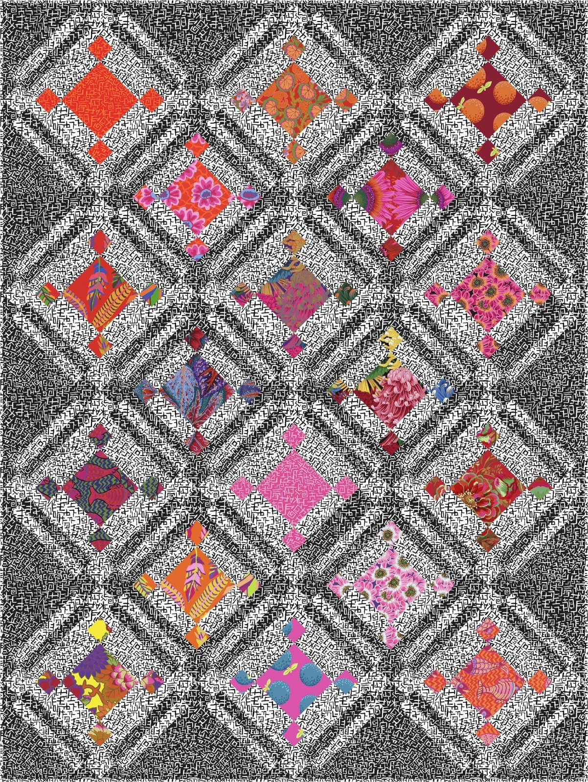 TAMARINIS - Kaffe Fasset Collective - Juxtaposition Quilt Kit is showcasing those large scale prints in a modern, fun way!