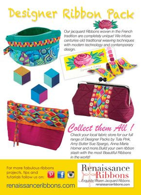 Kaffe Fassett-Spanish Rose - Designer Ribbon Pack is a collection of ribbons which brings together several of Kaffe Fasset's past collections into one vibrant and vivacious offering.