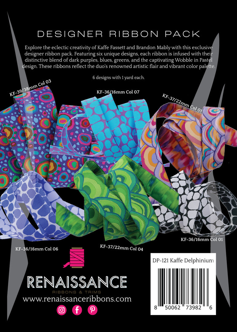 RENAISSANCE RIBBONS - Kaffe Fassett Collective - Classics, Designer Ribbon Pack bring vibrant accents to the Kaffe Fassett Collective, perfectly pairing with its rich colors and bold patterns.