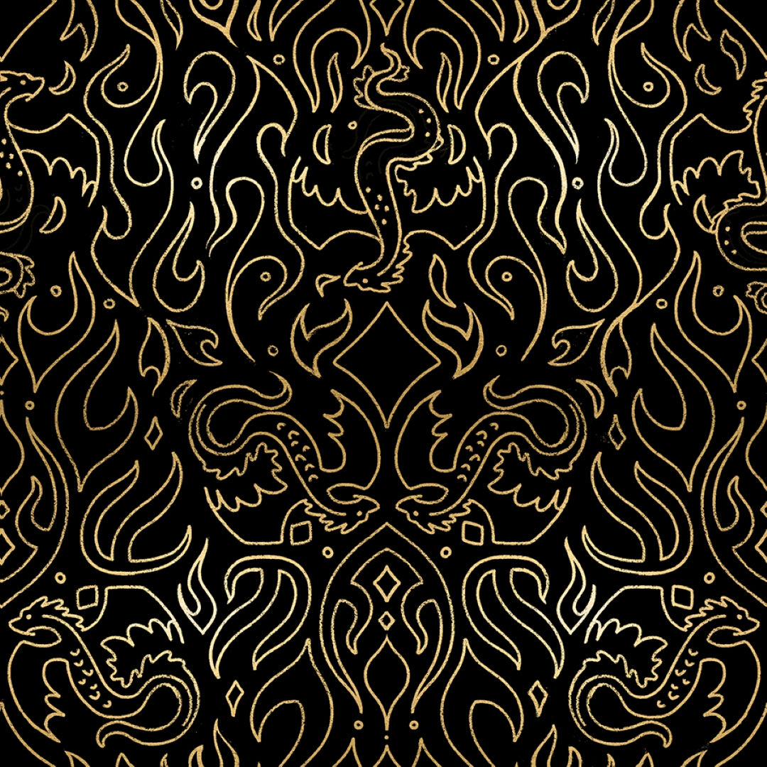 RUBY STAR SOCIETY - SARAH WATTS - Fire Glow - Metallic Watercress 2, is part of Fire Glow Collection, inspired by the intricate beauty of tapestries, the scrollwork of enamel tiles, and a blend of fantasy and folklore, Sarah weaves it all together through her singular, magical lens.