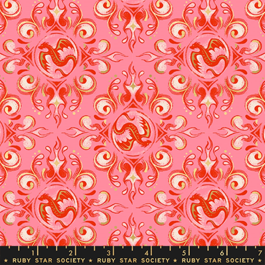 RUBY STAR SOCIETY - SARAH WATTS - Fire Glow - Metallic Dark Ruby 4, is part of Fire Glow Collection, inspired by the intricate beauty of tapestries, the scrollwork of enamel tiles, and a blend of fantasy and folklore, Sarah weaves it all together through her singular, magical lens.