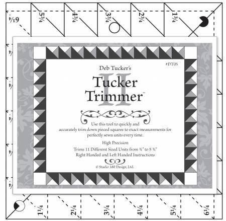 An “in between” version of the original Tucker Trimmer I tool, STUDIO 180 DESIGN - TUCKER - Trimmer II ruler allows you to do all of the same functions as the first except that the sizes of the units are in 1/4in or 3/4in increments.