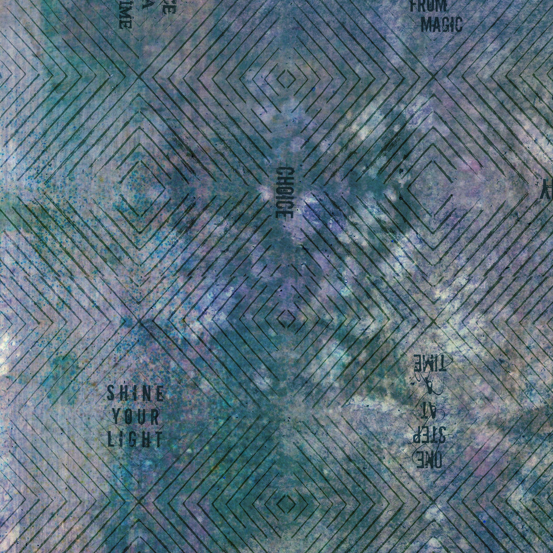 SETH APTER - One Layer Away - Enchanted Ombre, Celestial is part of the One Layer Away Collection by Seth Apter, featuring a moody ombré blend of inky blues, teals, and purples with layered texture and subtle stamped words.