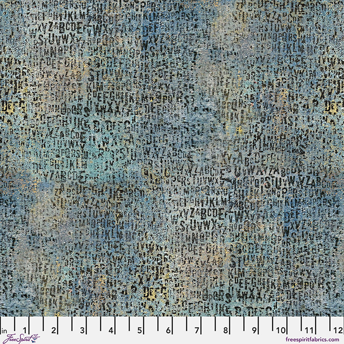 SETH APTER - One Layer Away - Lots of Letters, Ocean is part of the One Layer Away Collection by Seth Apter, featuring an allover alphabet print with a distressed, layered texture.
