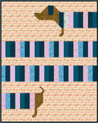 This intermediate level pattern features an adorable doxie that is very, very long! All the strips in the dogs body are 2 1/2" strips so pull out your jelly rolls and create this super cute quilt.