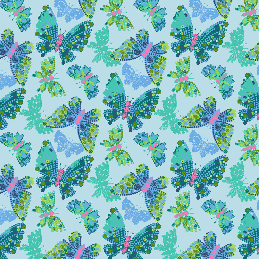 STACY PETERSON - Market Days - Butterfly Brooch, Sky SHIPPING FEBRUARY 2026 is part of the Market Days Collection, collection which features a gorgeous, bold floral print aptly named Rosey Outlook, inspired by the iconic movie stars Audrey Hepburn and Doris Day.