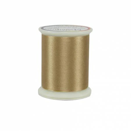MAGNIFICO - 40wt Polyester 500 yd Thread 2173 Sandy Brown is a 2-ply high-tenacity trilobal polyester thread. Designed for quilting, decorative stitching, and embroidery.