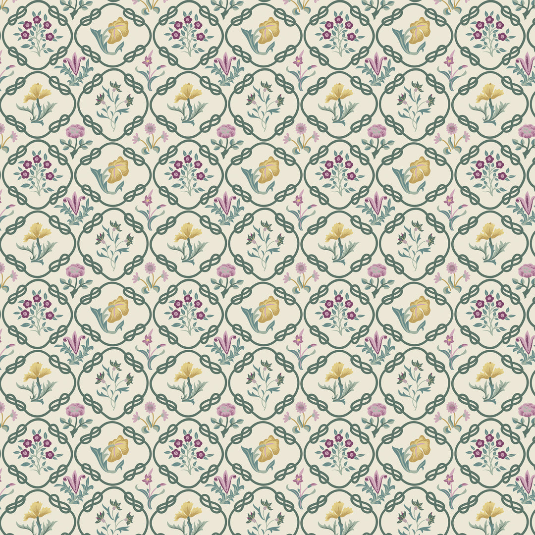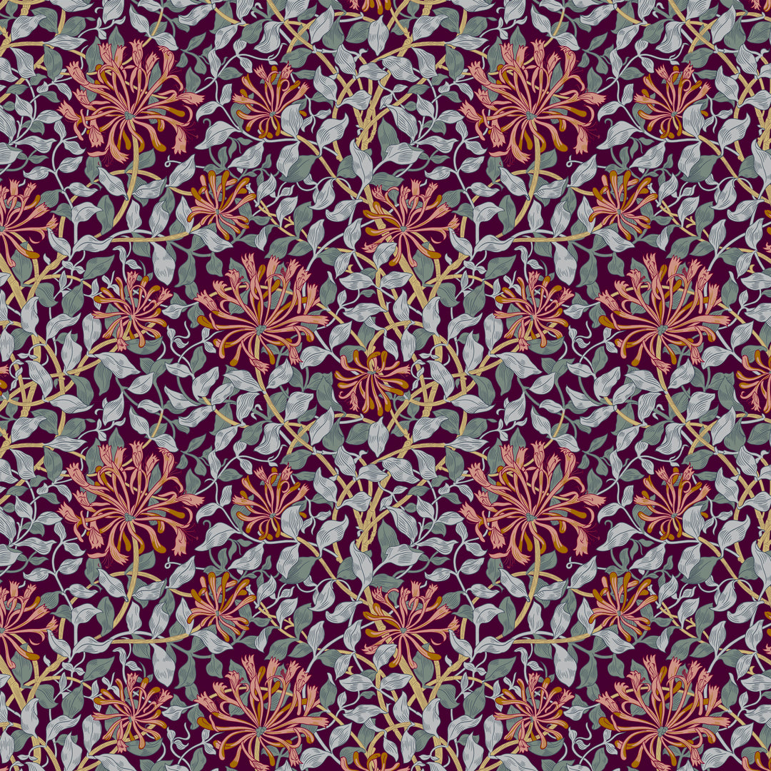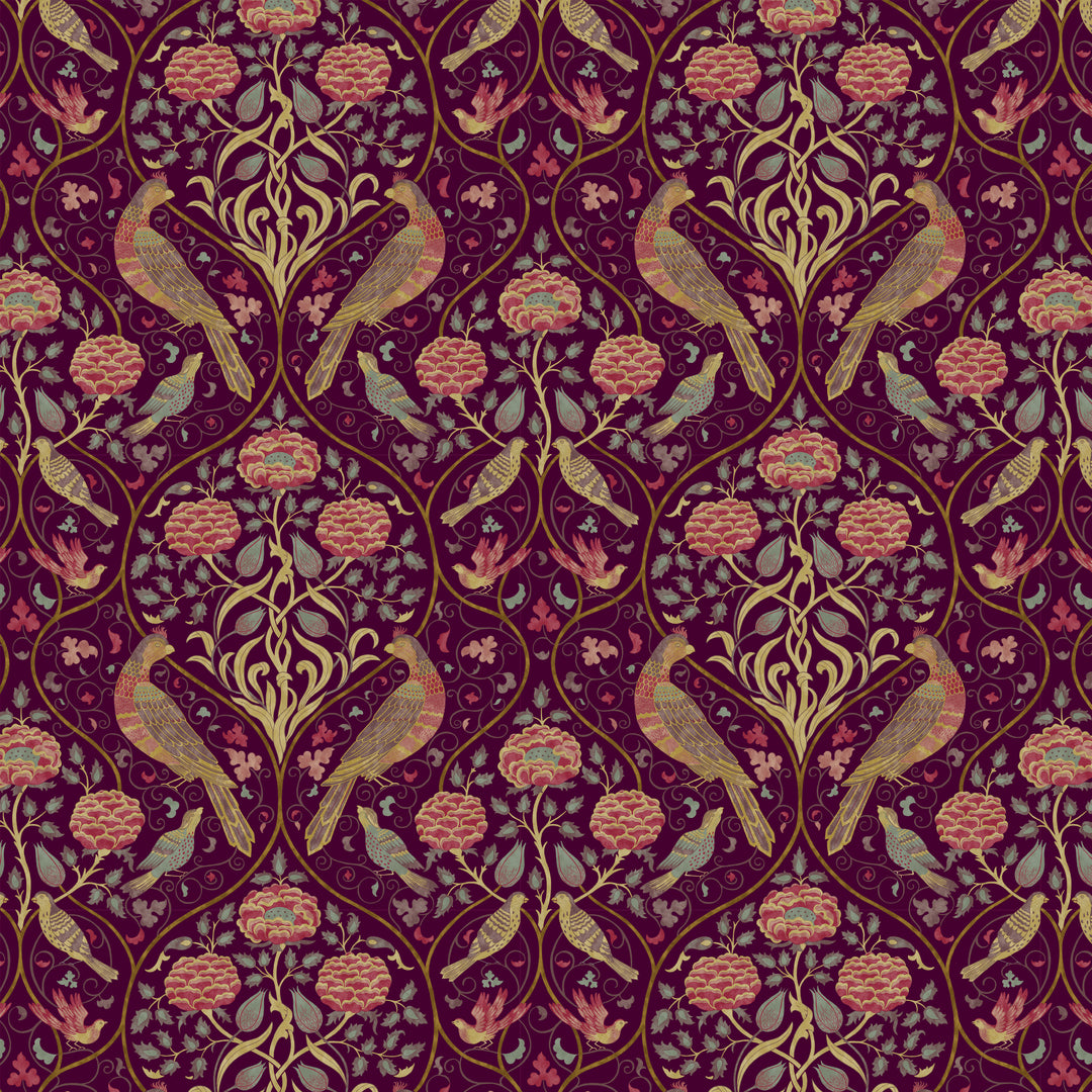 A delightful palette of soft autumn celebrating the skill of these talented designers whose hues enlivens the collection with abundant charm, work translates across embroidery and wallpaper design into beautifully composed and coloured fabrics.