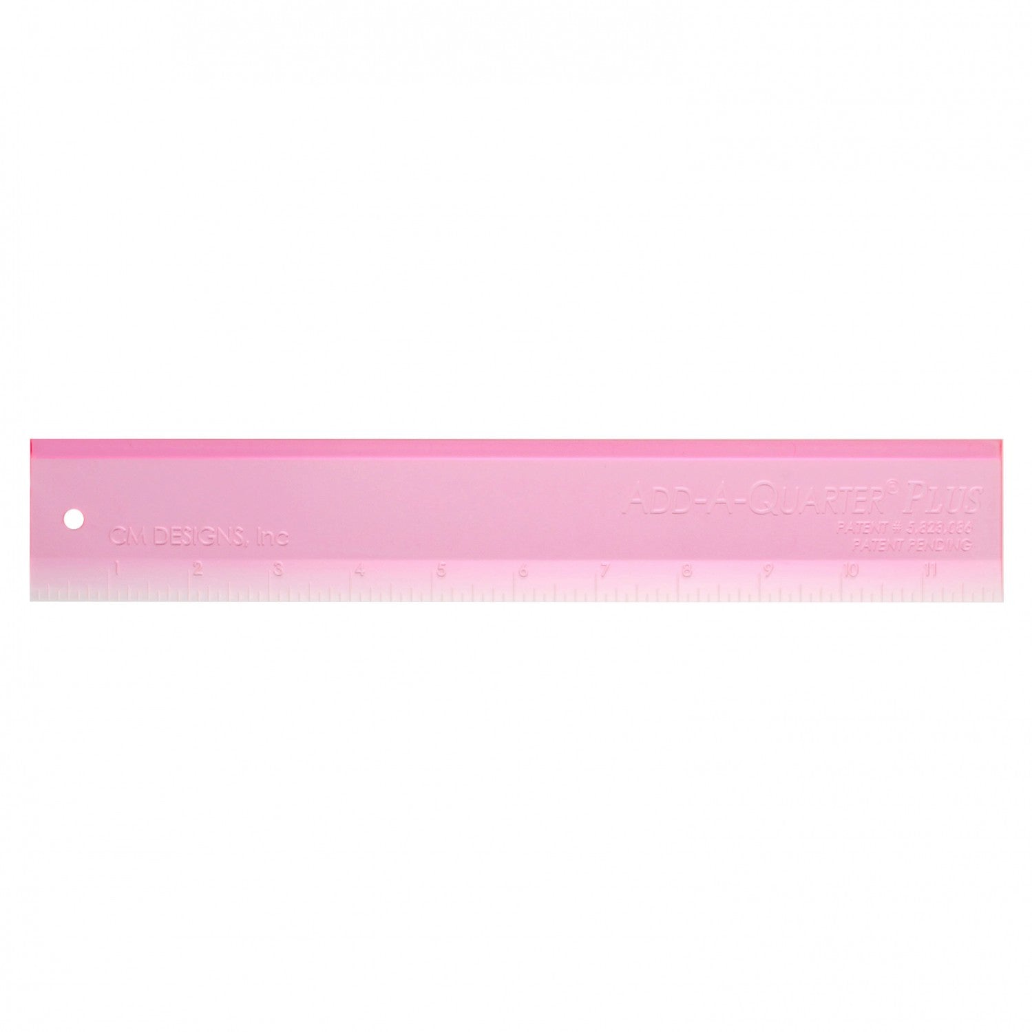 Add A-Quarter Ruler 12in Plus Pink specially designed lip on this ruler automatically allows 1/4 inch seam allowance to any angle for your rotary cutter.