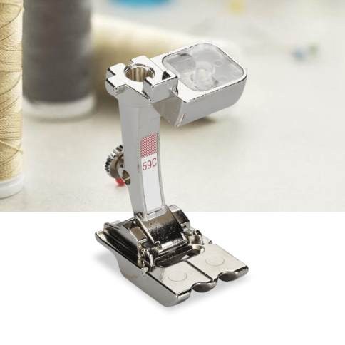 Enjoy the comfort and convenience of sewing with Double Cord Foot #59C – the professional when it comes to couching cords and sewing piping.