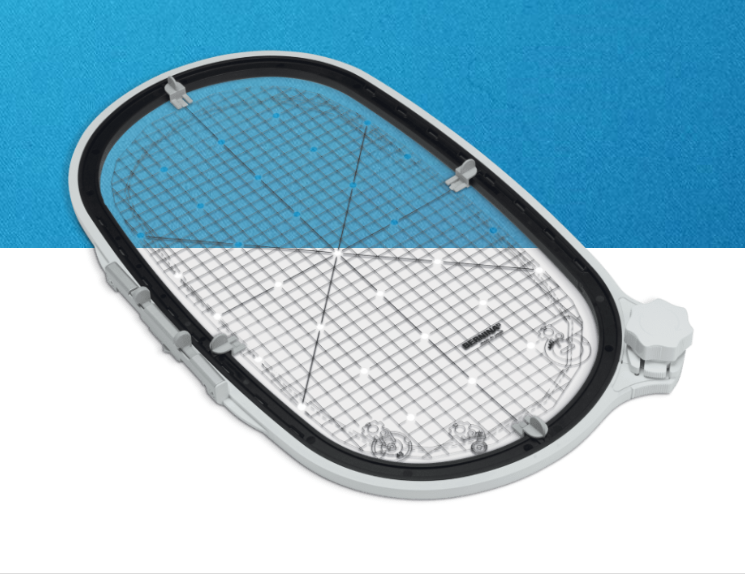 This ensures the embroidery design is optimally secured in the hoop.The template that is included allows for exact alignment of the fabric.