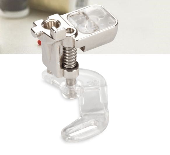The vertical spring presses the foot securely to your project, preventing the fabric from riding up with the needle (flagging). The material therefore lies flat while it is being sewn, allowing you to produce neat, consistent stitches.