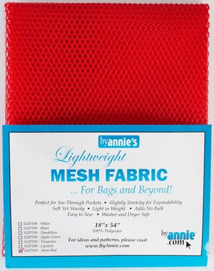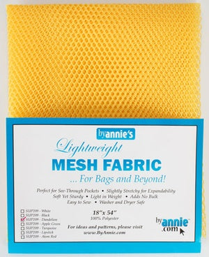ByAnnie Mesh Fabric 18 x 54". Lightweight and a bit stretchy, this mesh is fabulous! Perfect for pockets on bags or anywhere you want to be able to see what you are storing, the mesh also works great in various garment applications and utility needs.