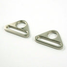 These flat triangle rings have two holes and fit a variety of bag strap sizes. Clip your swivel hook right into the top hole. No more bag rings sliding and twisting in your strap tabs, and they look good too!
