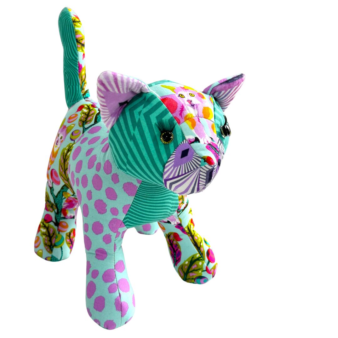 FUNKY FRIENDS FACTORY - PATCH THE PUSSY CAT Kit beautifully made from Tula Pink miscellaneous and True colors collections.
