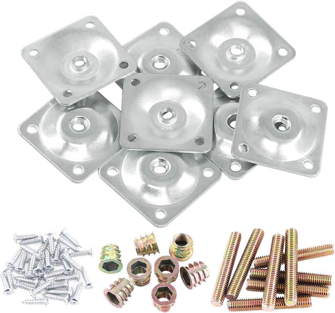 Glarks 8 Sets Sliver Furniture Leg Mounting Plates Set, 8 Pcs Leg Attachment Plates with 40pcs 5/16" Hanger Bolts Screws for Furniture Sofa Couches Seats