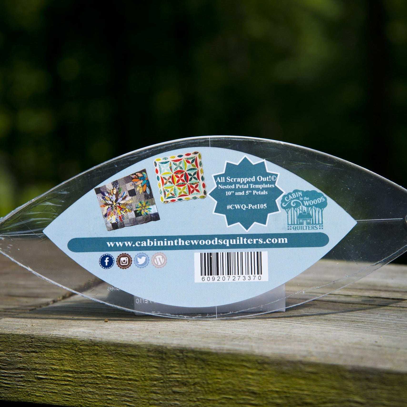 Cabin in the Woods Quilts - Nested Petal templates 10/5 is a must-have tool for all Cabin in the Woods Quilts applique patterns. These acrylic templates come in 10" and 5" petal sizes with crosshairs for perfect placement. They work seamlessly with the CABIN IN THE WOODS - SCRAP PETAL GARDEN PATTERN and make cutting accurate, fast, and easy.